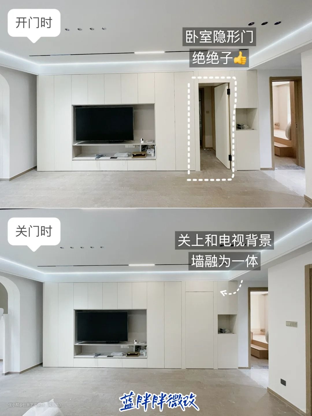 ▪和电视墙旁边有门不好看,定制了隐形门💍关门和电视墙融为一体