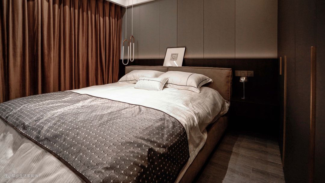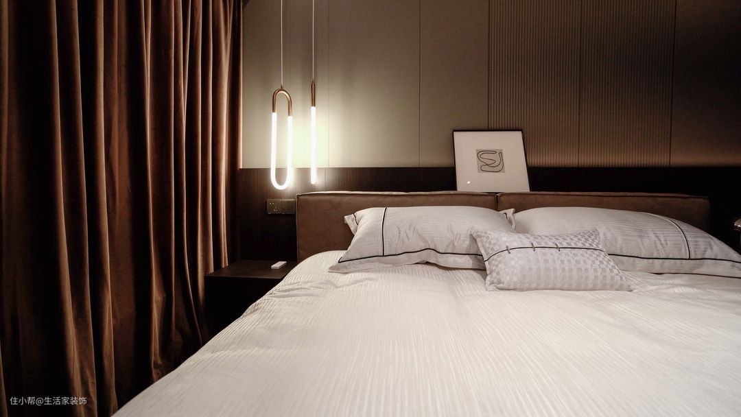 搭配柔和的灯光和咖色不透光的窗帘