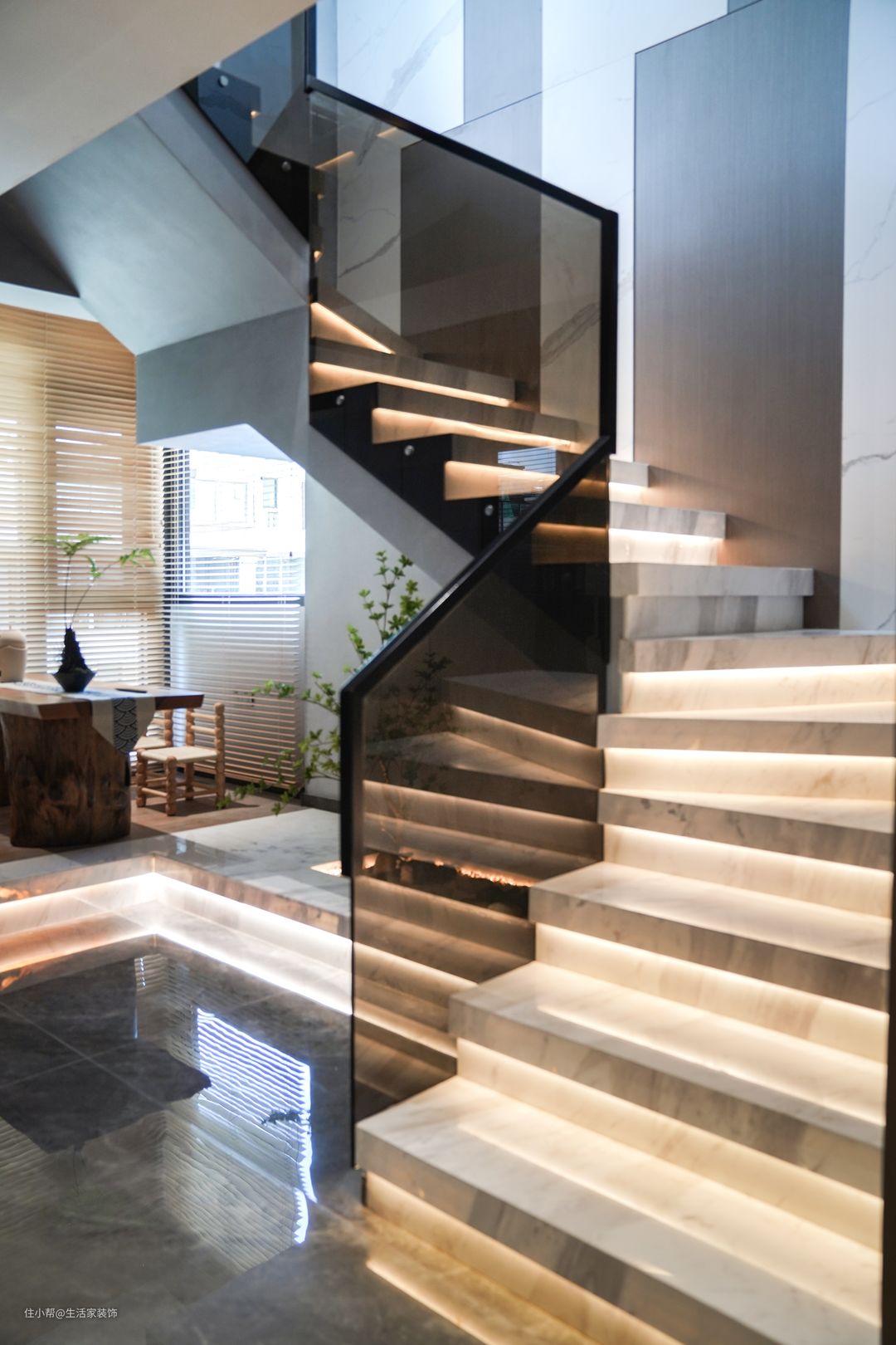 石材与原木的结合,现代与自然的碰撞