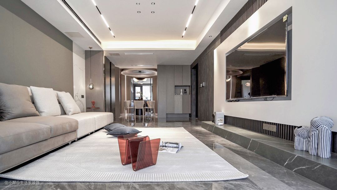 客厅没有茶几,中间通道成为了社交的场所