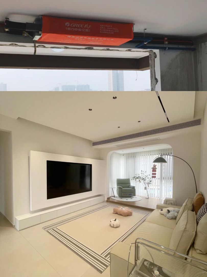 - 优点:家用一拖多的“分体式空调”,同样隐藏在吊顶上,控温均衡、整体性强、节能效果好