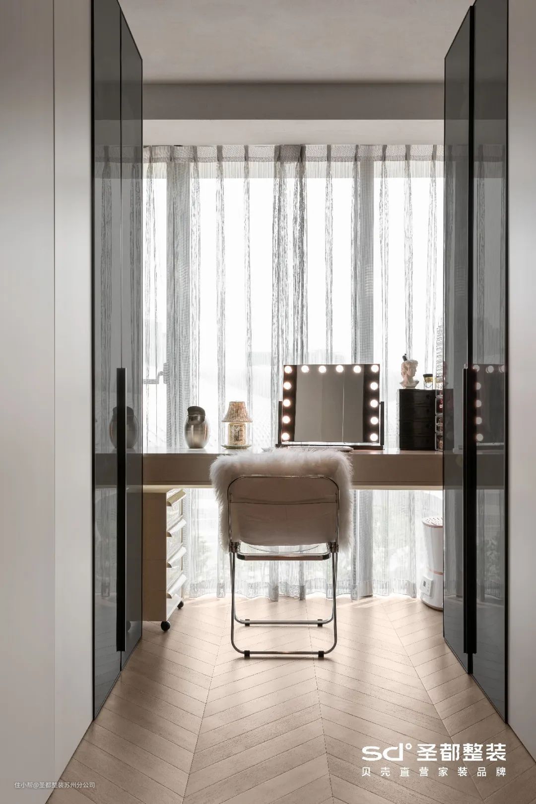 玄关空间大的话,可以定制整体柜,打造一个小型衣帽间;