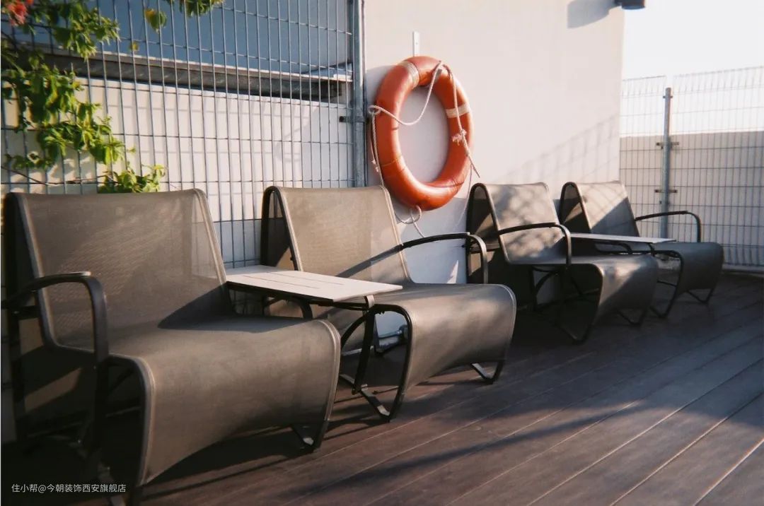 配置舒适的户外家具,如躺椅、藤椅、沙发等,用于放松休息、阅读书籍或享受户外的阳光。