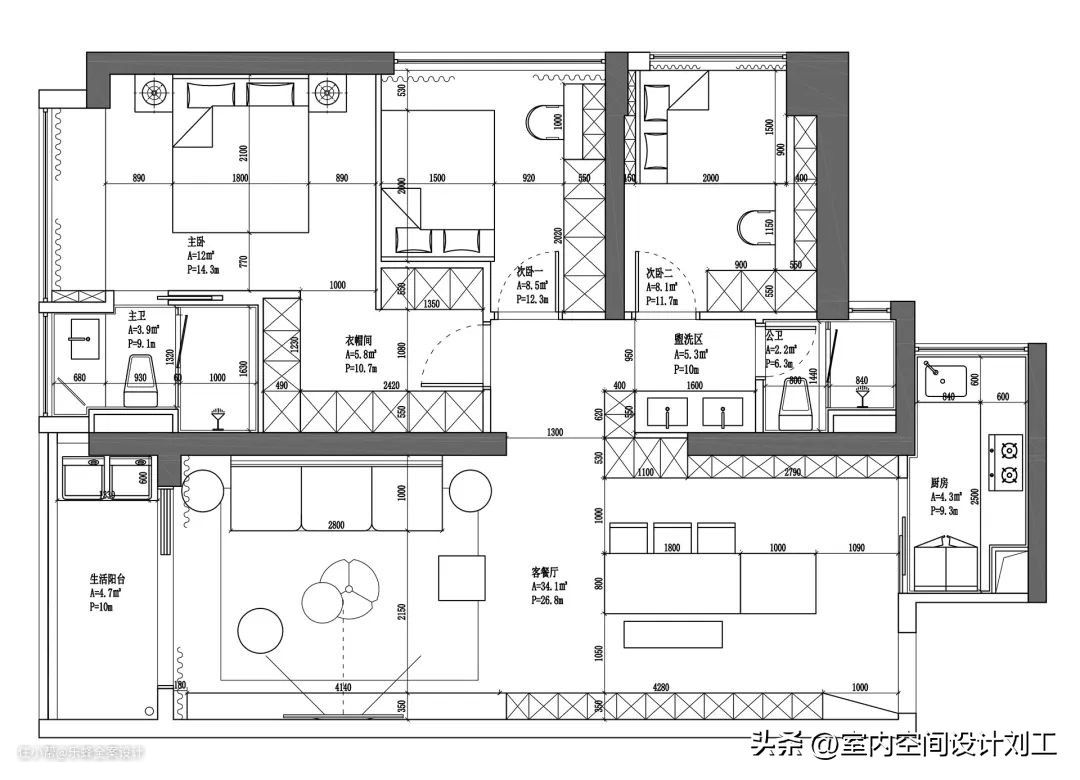 ④业主希望有个衣帽间,厨房可以缩小空间。