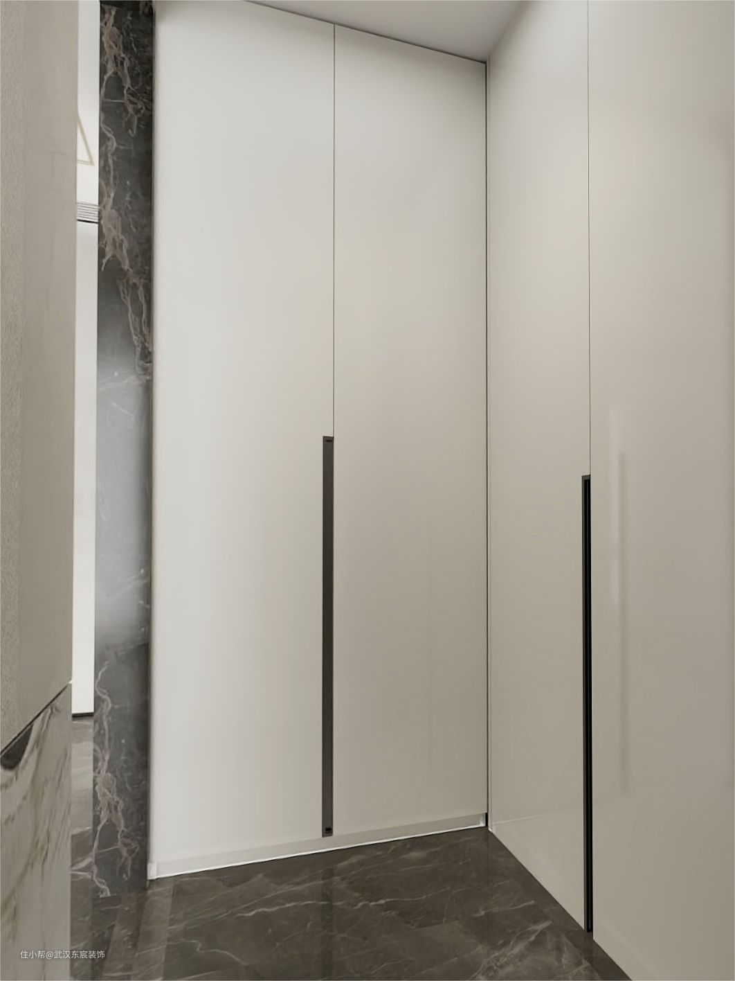 不过需要注意衣柜和床/墙留出至少60cm左右的过道,足够走动方便开门,衣柜内部进深也需要留出60cm左右。
