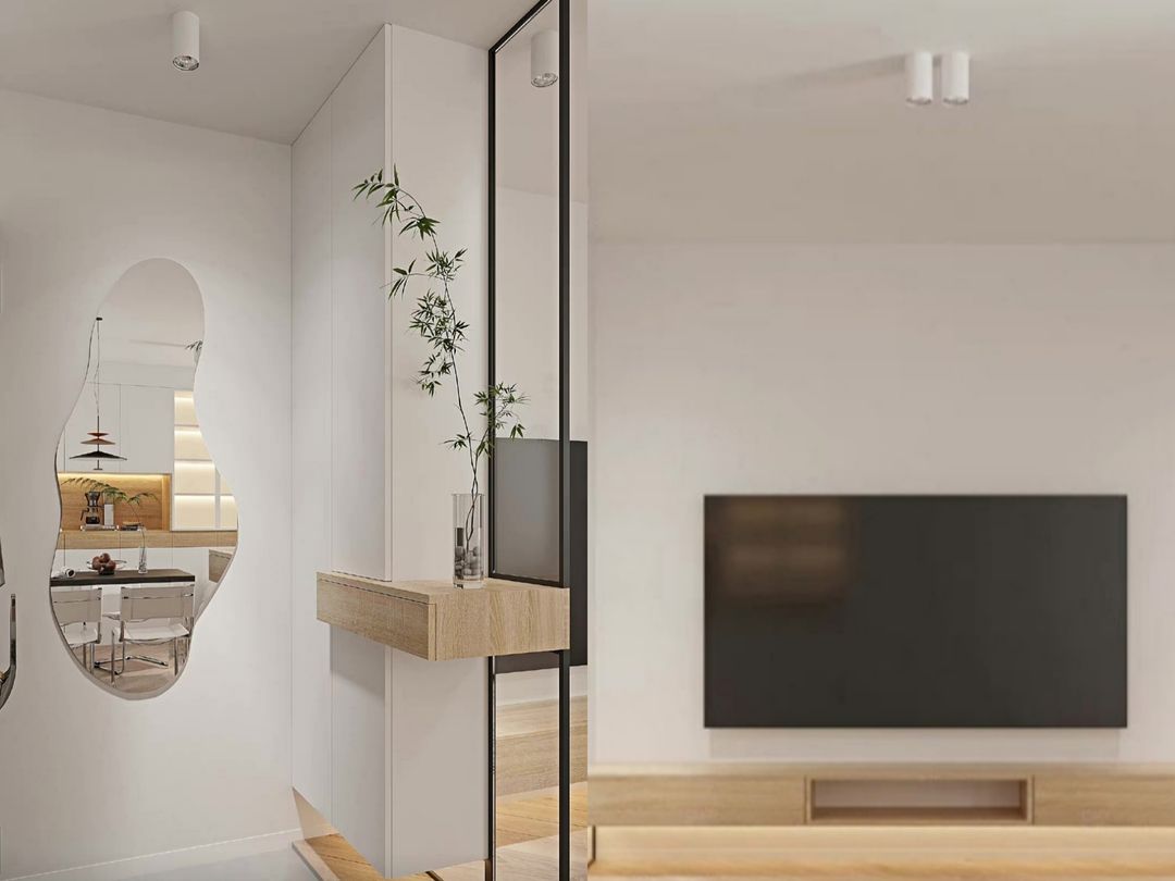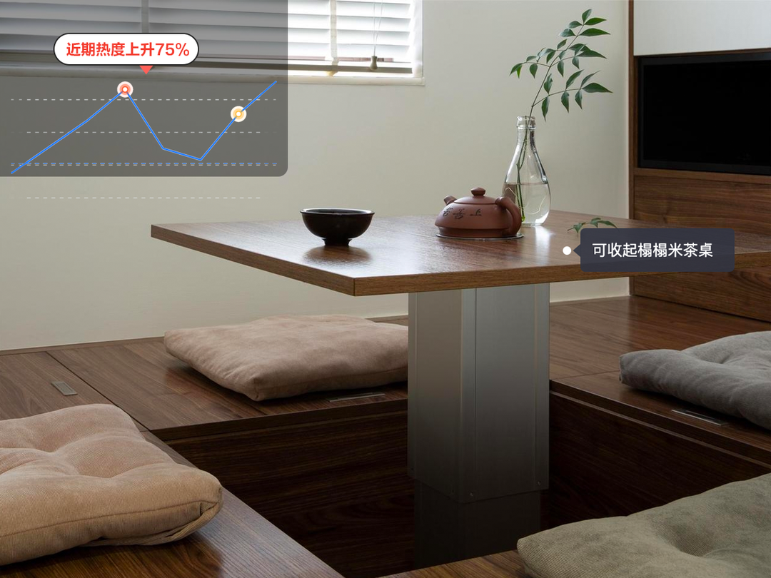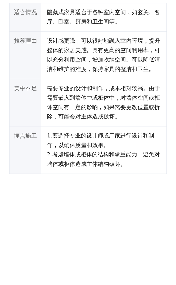 将家具设计成与墙面或其他基础元素融为一体的隐藏式家具,减少家具本身的突兀感。例如,折叠餐桌活、收纳床、旋转桌子等。