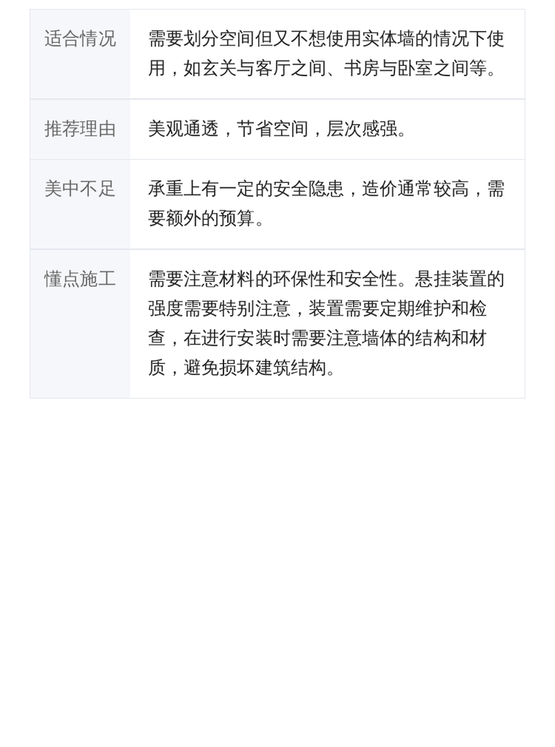 悬浮式隔断墙是一种主要靠天花进行受力的墙体,其整体设计感强、简约轻便。
