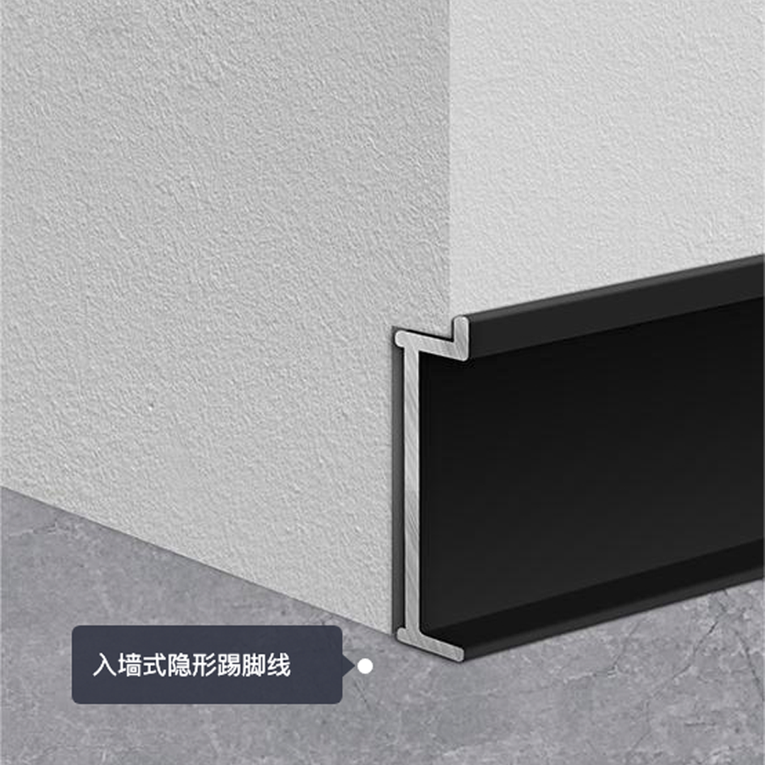 隐形踢脚线:是一种嵌入墙面或与墙面平行的踢脚线,不会积灰且家具可以靠墙摆放,具有整体美观、易清洁、卫生死角少等优点。