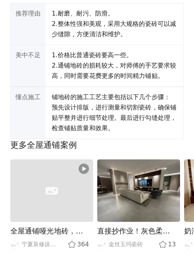 通铺地砖是将地砖从入户门或走道区域开始铺贴,并以一定的方向和规律延伸至整个空间,使整个地面呈现出整体性和连续性。适用于各种材质和颜色的地砖,如柔光瓷砖、木纹砖、石材等。