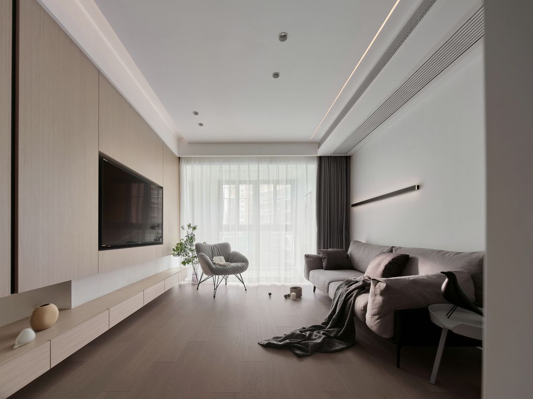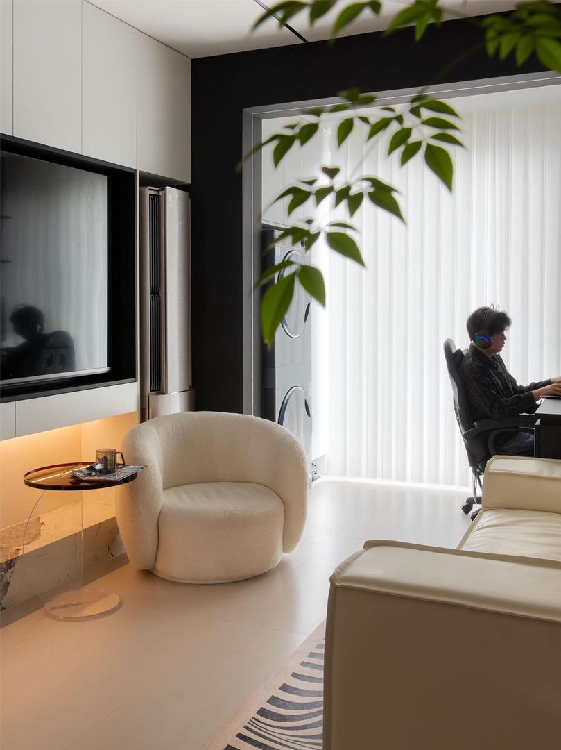 隐形设计强调将家具、家电、装饰品等元素与墙面、地面、天花板等基础元素进行统一、流畅、自然地融合,营造出一种简洁、舒适、和谐的整体室内环境。