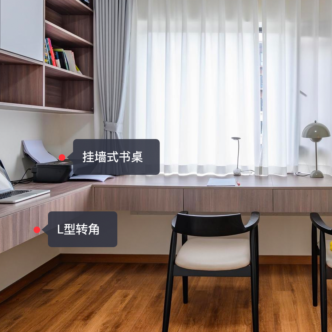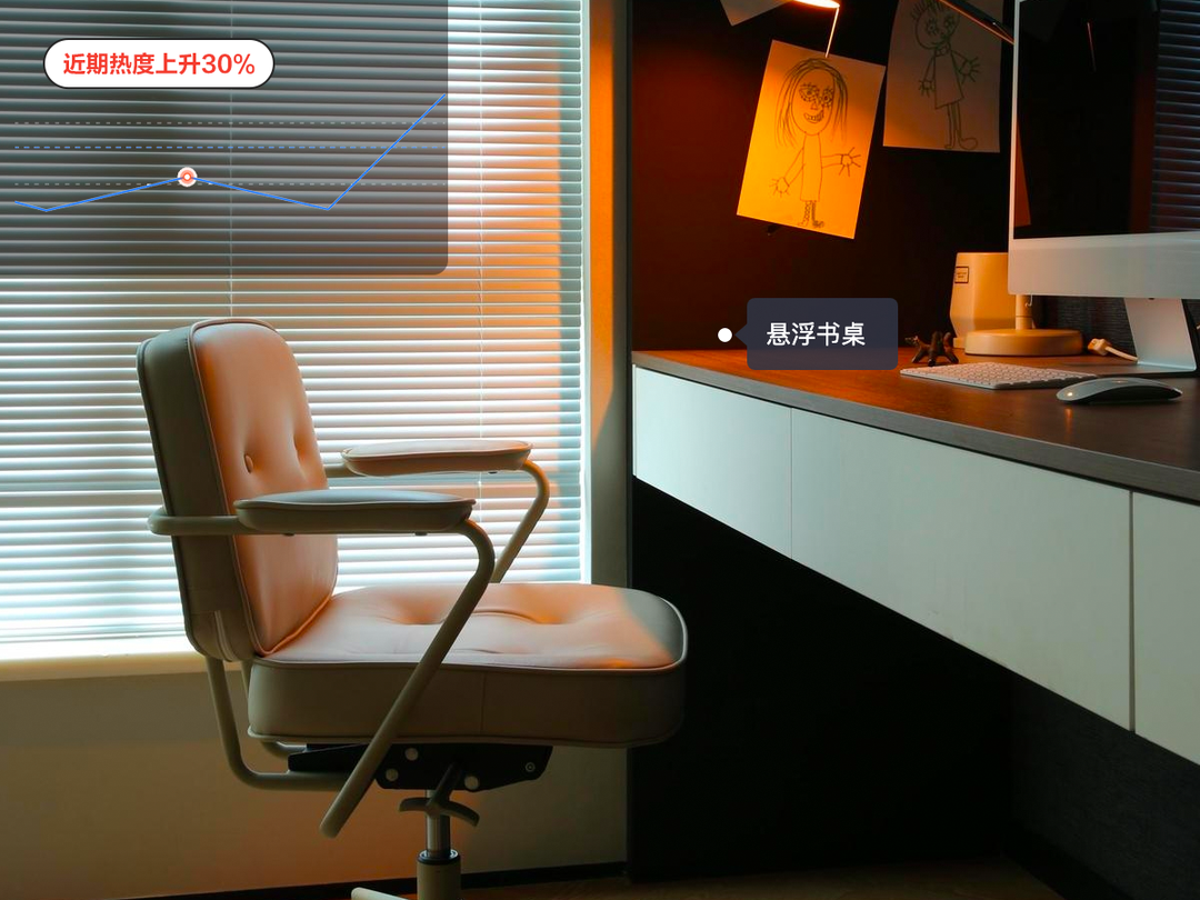 悬浮书桌:通常挂墙式悬浮的设计,能减少对空间的占用,增加空间的开阔感和通透感。