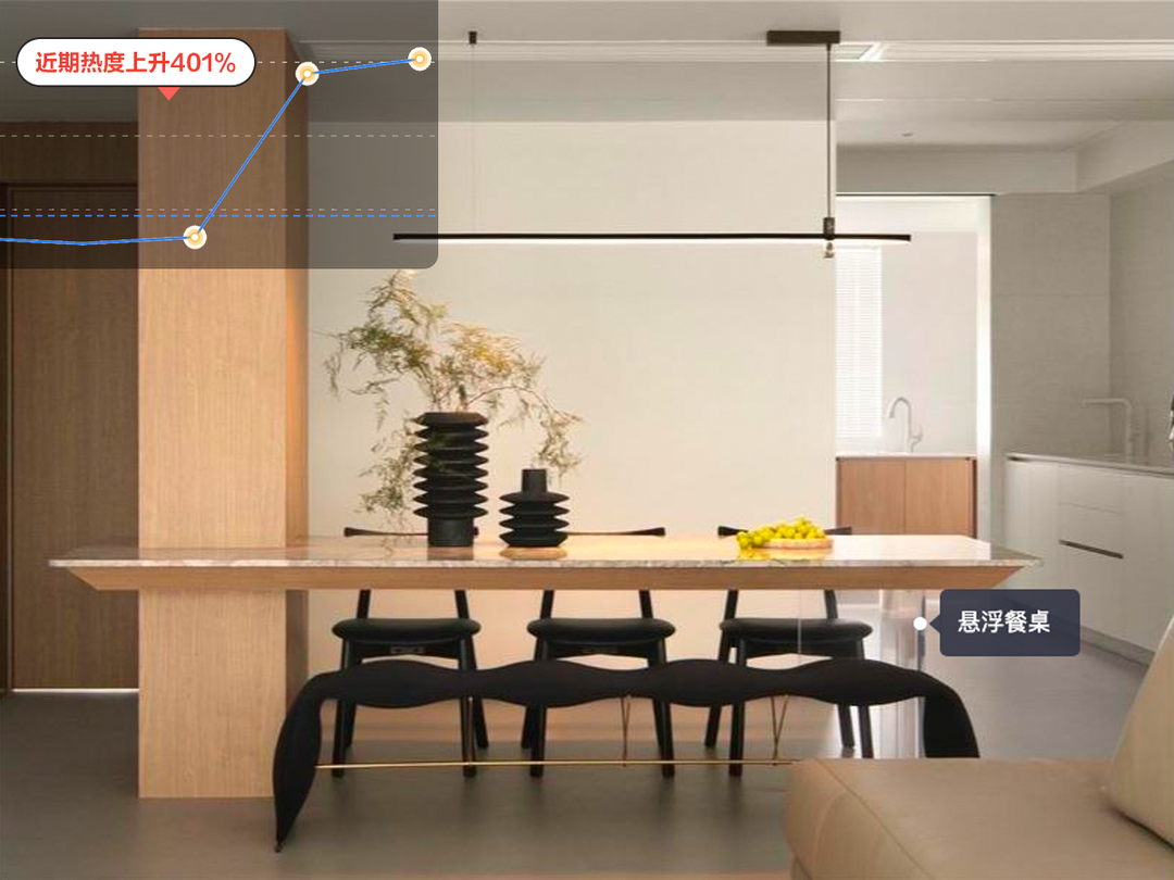 悬浮设计,将家具、天花板等元素“悬浮”在空间中,让原本沉重的装潢变轻盈。