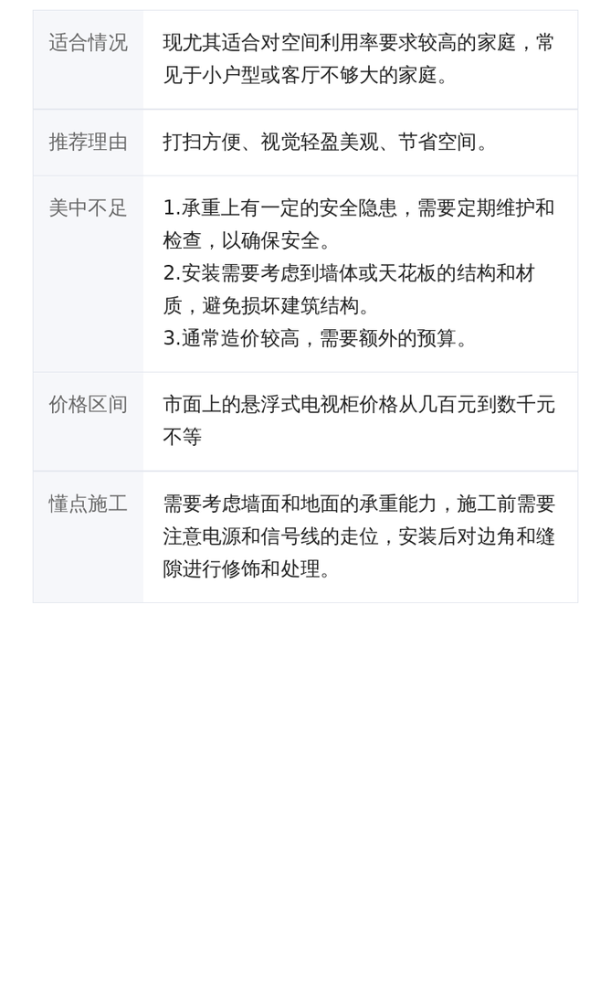 悬浮电视柜:分为柜体悬浮和整墙悬浮2种类型。