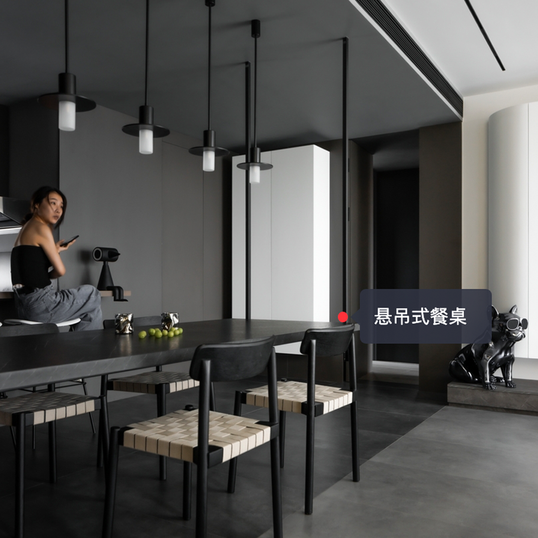 悬浮餐桌:是指没有传统桌腿支撑,而是通过墙面或天花板固定的餐桌。这种餐桌设计现代感强,具有漂浮感,适合各种家居风格。