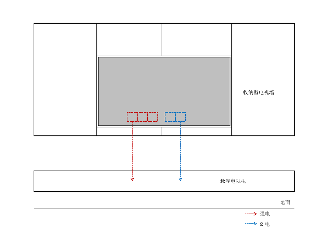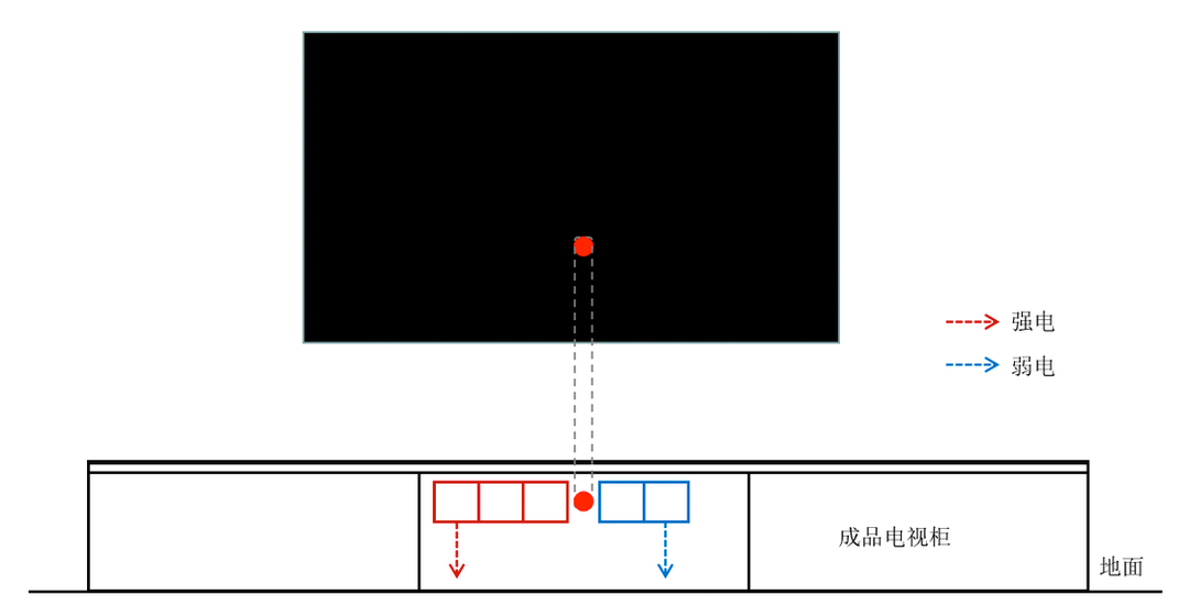 避坑要点:为避免凌乱线路裸露,需对墙面开槽,在墙面预留一根50mm的管道,电源线通过管道连接到电视柜后,以到达隐藏的效果。