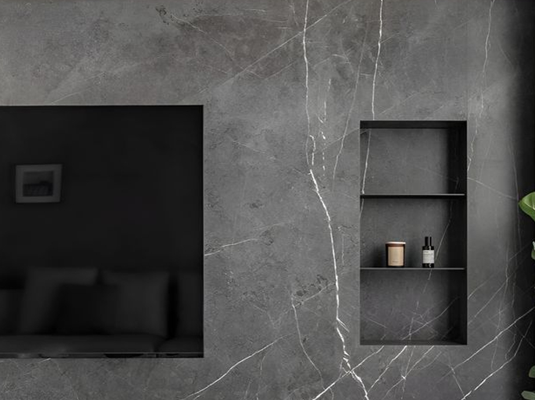 更轻奢:大理石壁龛。更有艺术质感,适合喜欢意式轻奢的家庭。多用于整体大理石的电视背景墙。