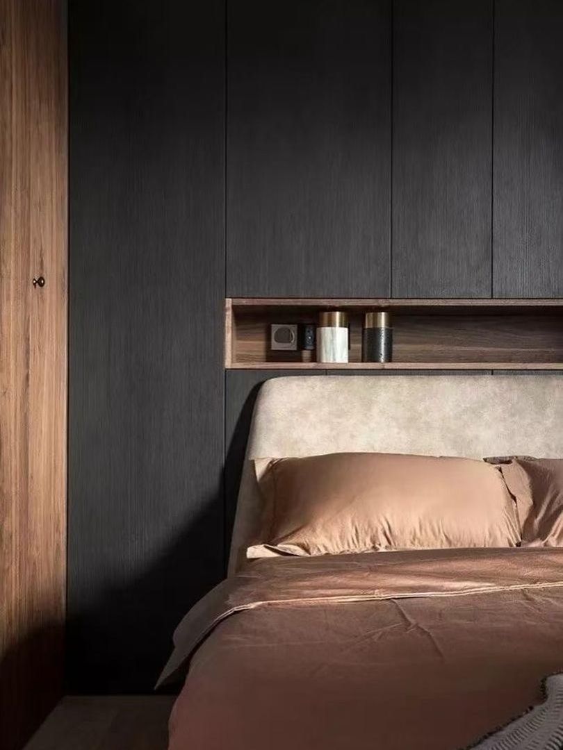 更有氛围:木质壁龛。可营造出雅致氛围,适合自然原木风的家庭。可与定制柜一起设计,卫生间要在干区使用。
