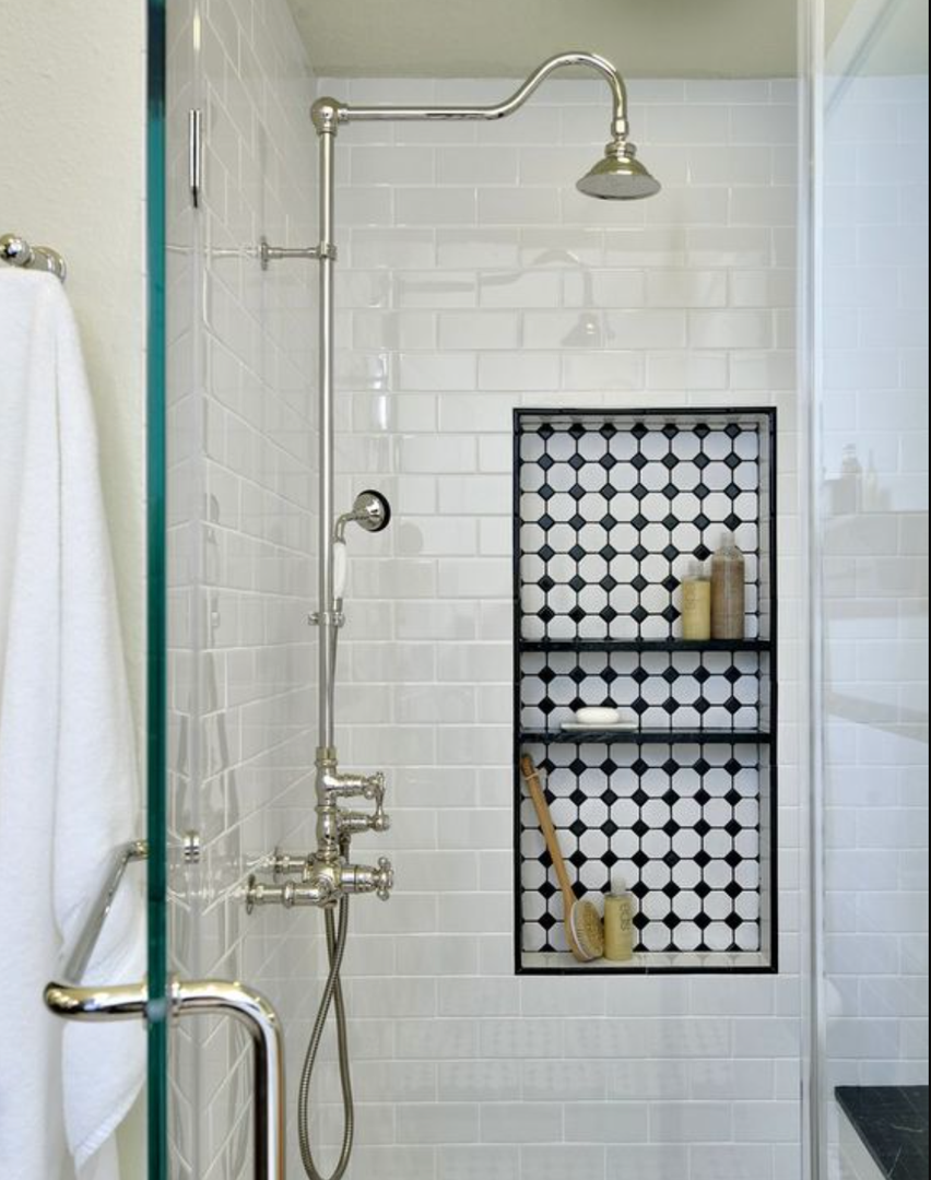 省钱好打理:瓷砖壁龛。多用在卫生间,可在整体铺贴瓷砖时同步铺贴,整体搭配效果好,且后期好打理。贴壁龛需要对缝,对工艺要求高,需额外付工费。