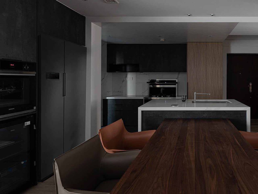 冰箱嵌入餐边柜有两种方式,一种会预留部分尺寸;另一种则可以实现零嵌入的效果。