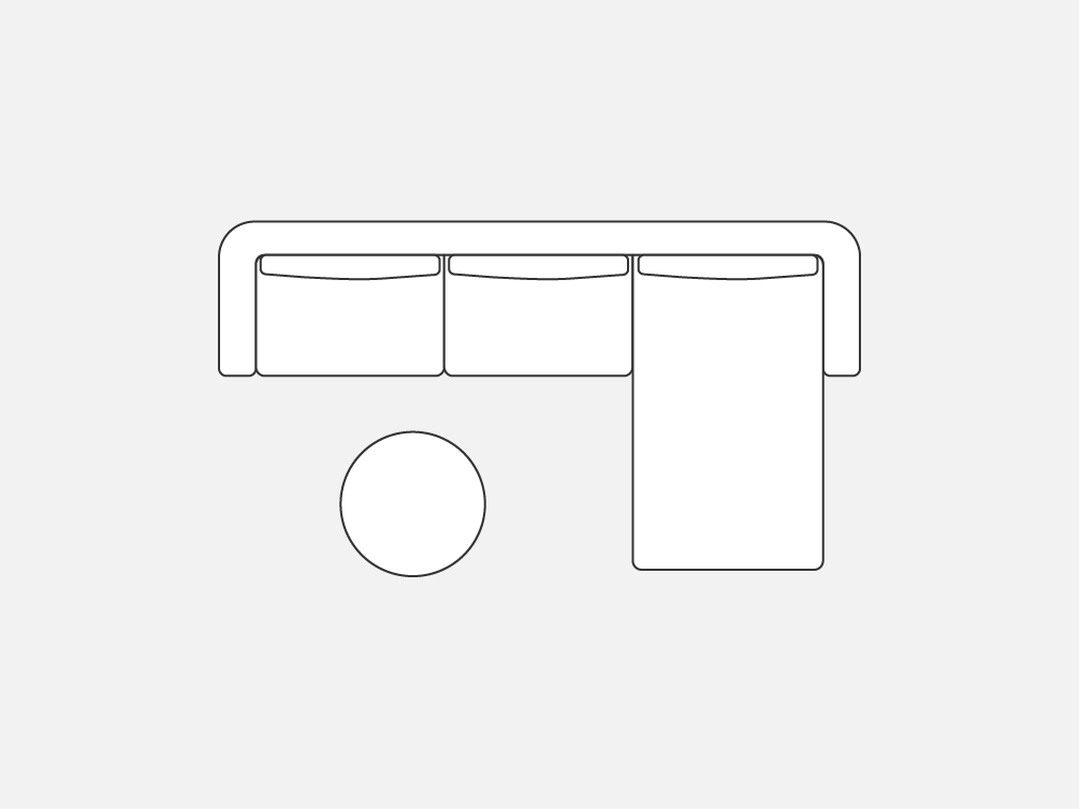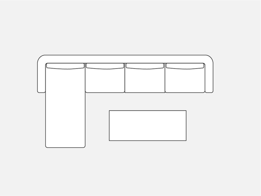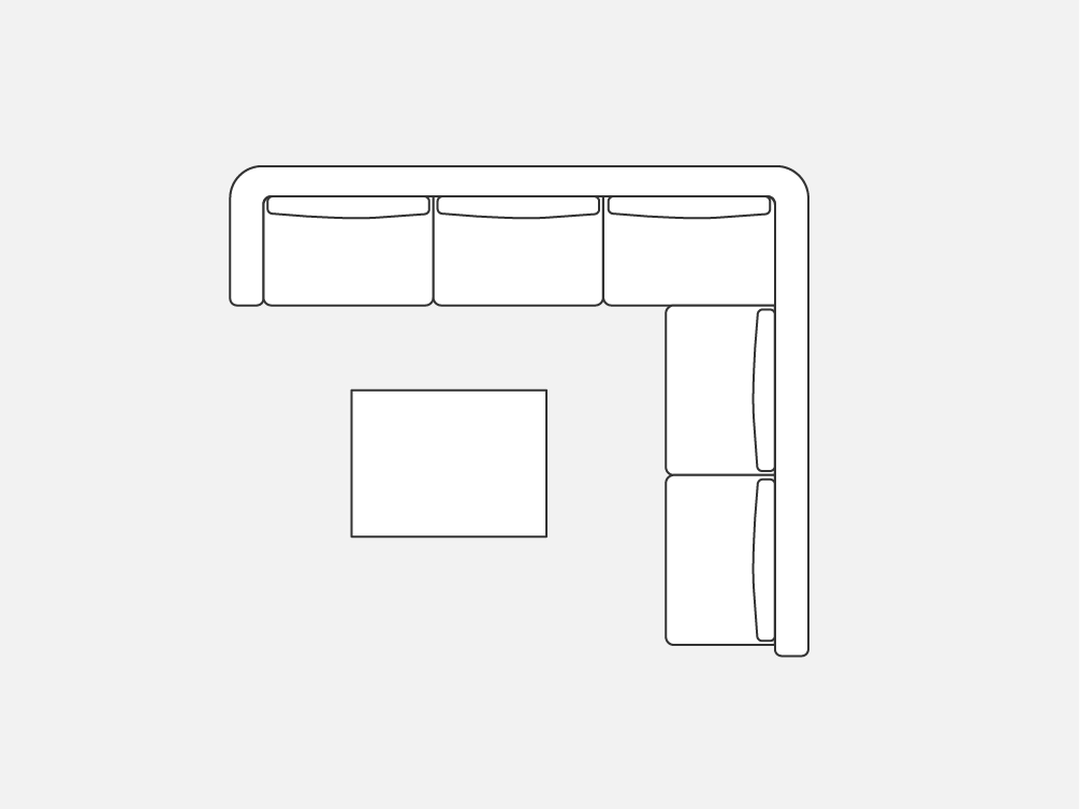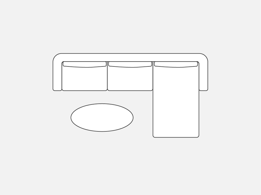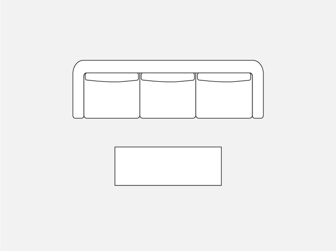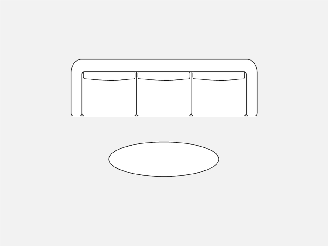 这种常规布局,通常茶几会摆放在居中位置,不同的沙发,适配不同形状的茶几: