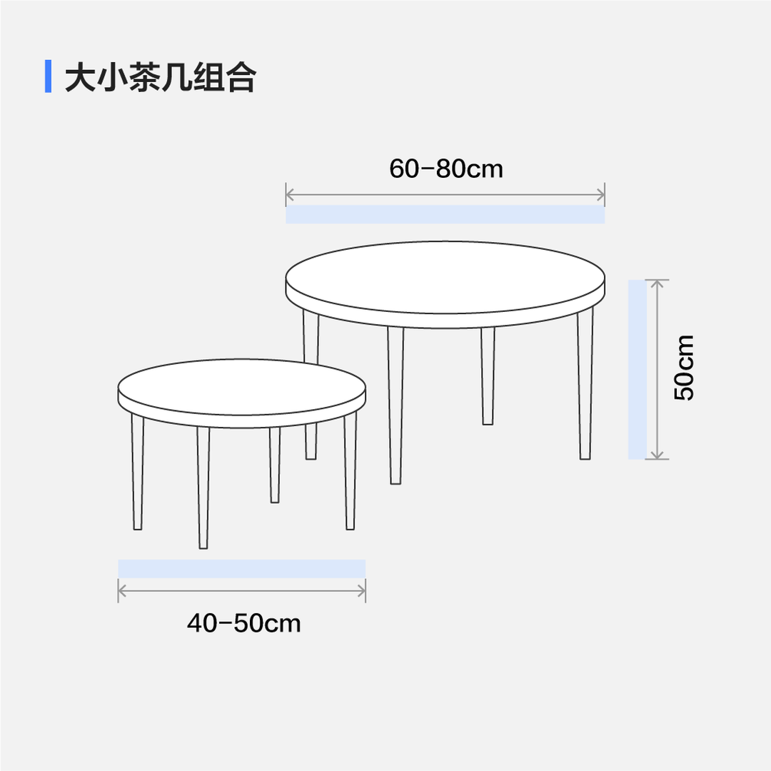 - 圆形茶几:直径60-100cm,高度35-50cm