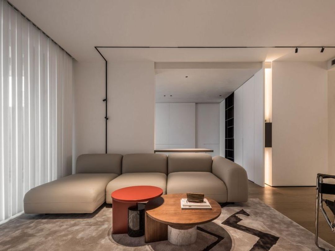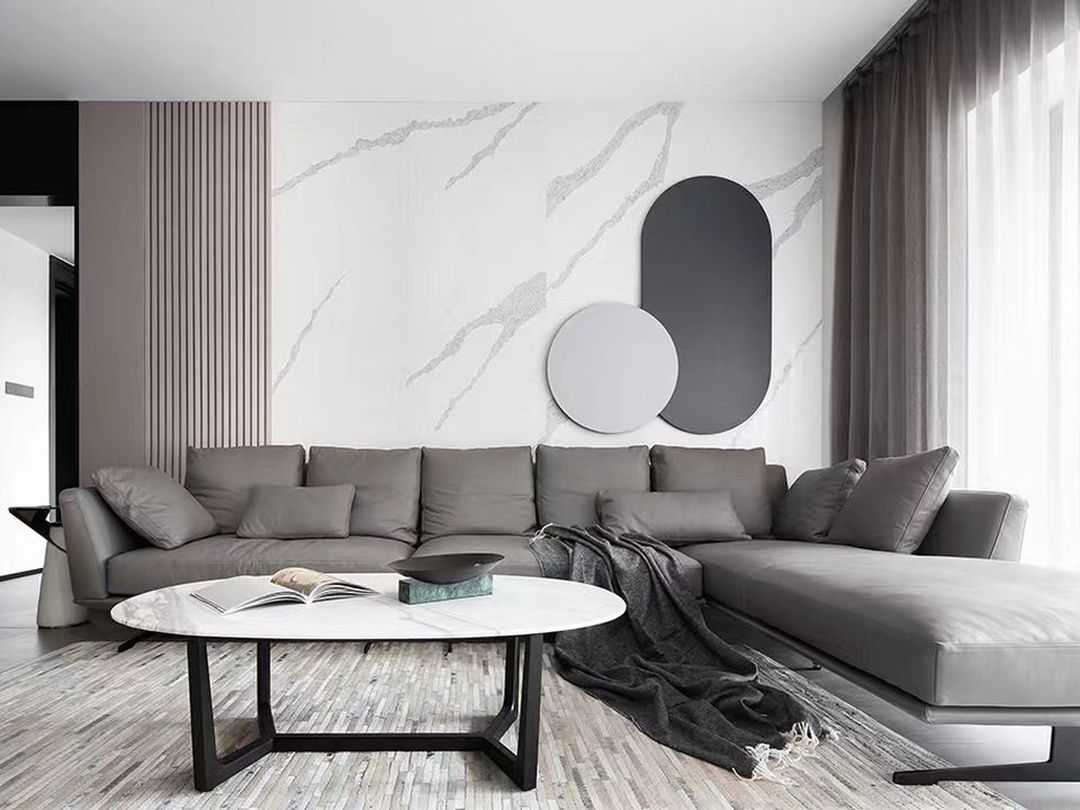 L型沙发更适合用圆形和椭圆形茶几,动线流畅;当L型一侧过长时,建议使用长方形茶几摆放在居中位置,方便靠边客人放置物品,注意做好边角防护。