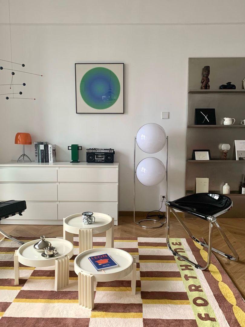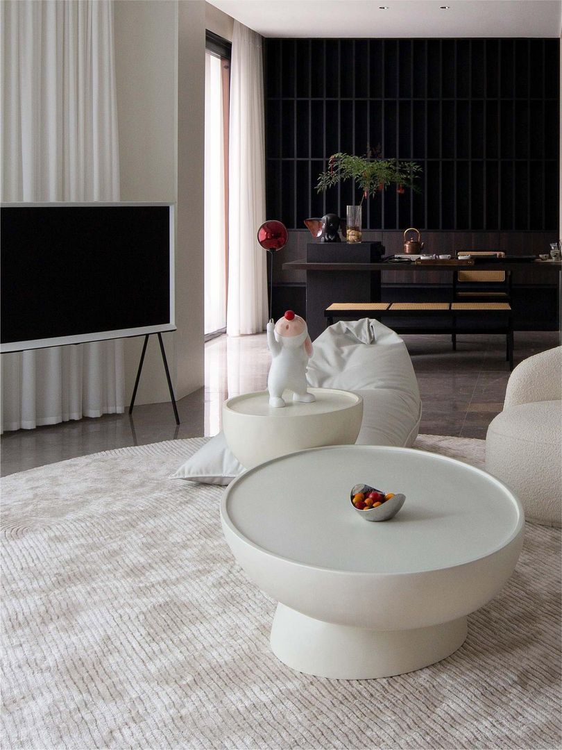 组合茶几:适合大空间,可组合不同材质形状和尺寸;视觉效果比一张超大size的茶几更惊艳。