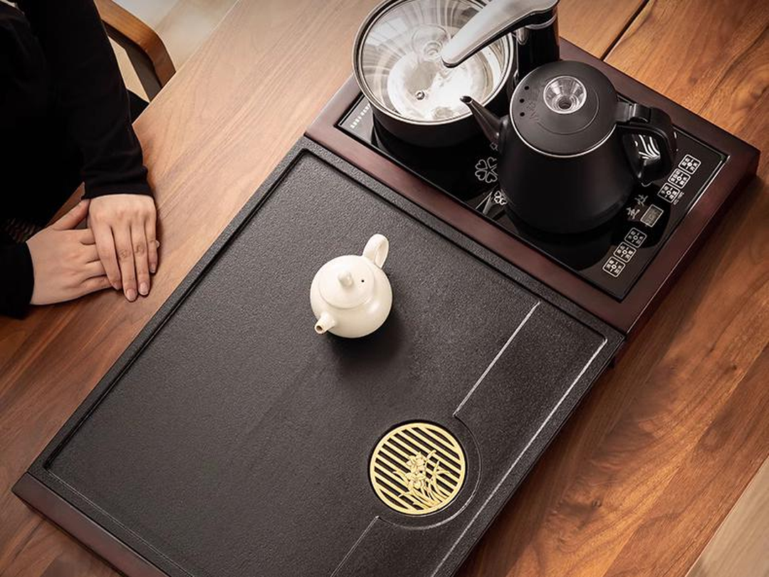 - 茶台烧水壶,下置水桶和废水桶,自动上水烧水,有排水功能。