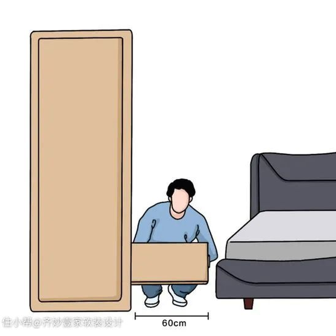 预留尺寸:同时要考虑留出衣柜,床头柜的尺寸。床两边最少留出45-60cm,方便日常通行和更换床单。