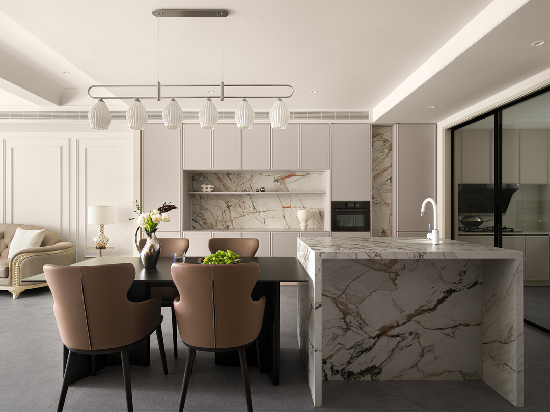 餐边柜的台面目前以木质和石材两种居多,木材台面质感温润、颜色丰富、更贴近自然,适合做原木风格的餐边柜。石材台面通用于所有风格餐边柜,石材台面比木质台面有更好的耐污、抗震、易清洁等物理特性。