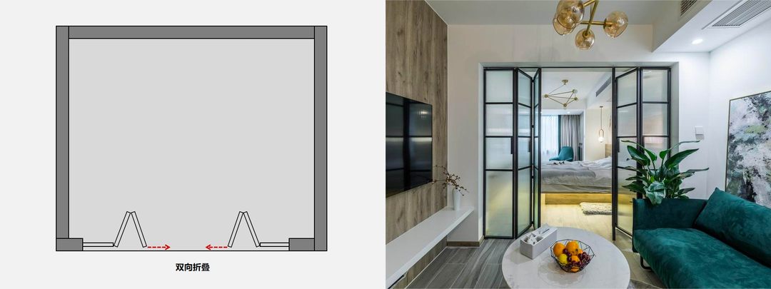 适合情况:一般适合大开间,两侧有一扇固定扇,中间两扇起收纳开启的作用。