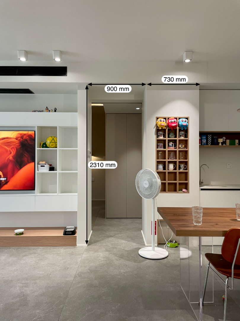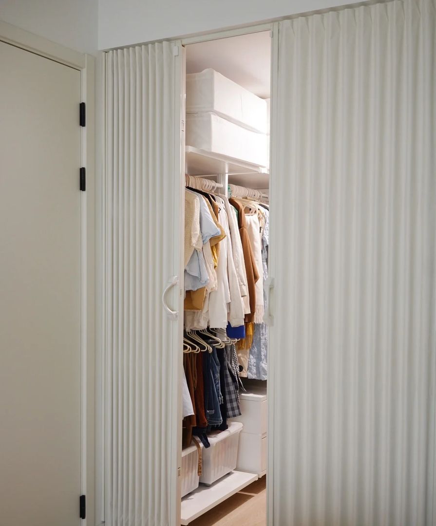 适合情况:一般适合在有一个可以固定或相对固定的收纳空间,其余两扇玻璃门可以完全打开或收纳。