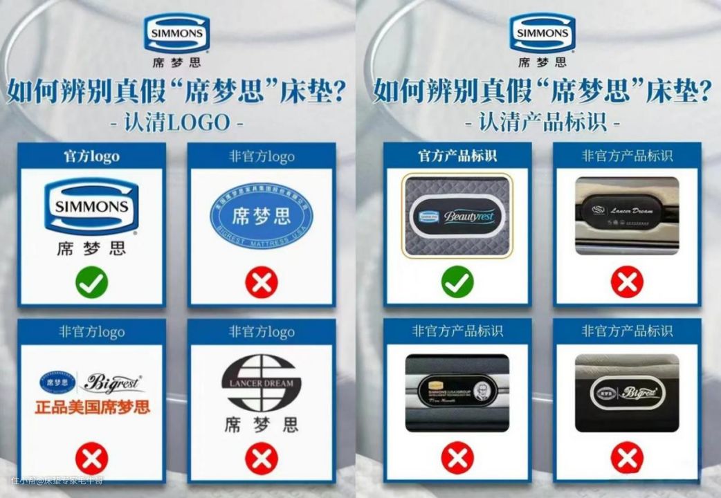 虽然品牌有溢价,但作为床垫的品牌代表,我还是以席梦思床垫为例,来教兄弟们如何辨别品牌床垫的真假: