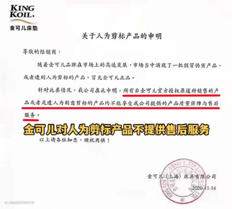 很多人估计都听垫,剪的就是这个产品标识,床垫的工艺、规格、标准、防伪码等都会体现在上面。如果床垫被剪标,很可能是因为其是盗版的床垫,没有一个正规的产品标识。也有可能是其他区域的渠道商跨区销售,大品牌的线下床垫不同区域的售价是完全不一样的,夸张的能差个4位数都有,剪标的目的也可能是为了隐去渠道信息,总之剪标的产品是无法得到官方的质保与售后服务的。