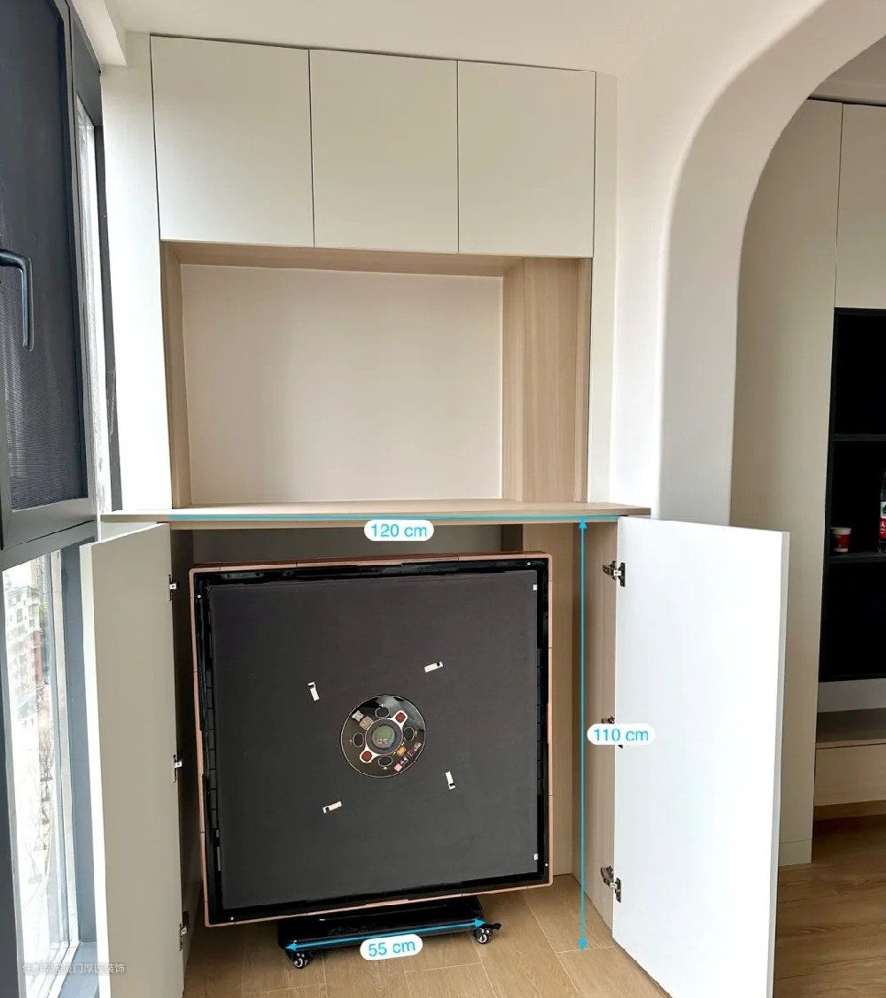 扫地机器人由于要配合水电,所以最好的位置是阳台洗衣柜或是洗脸台的位置。设计时要根据机器人的规格,预留出足够的空间。