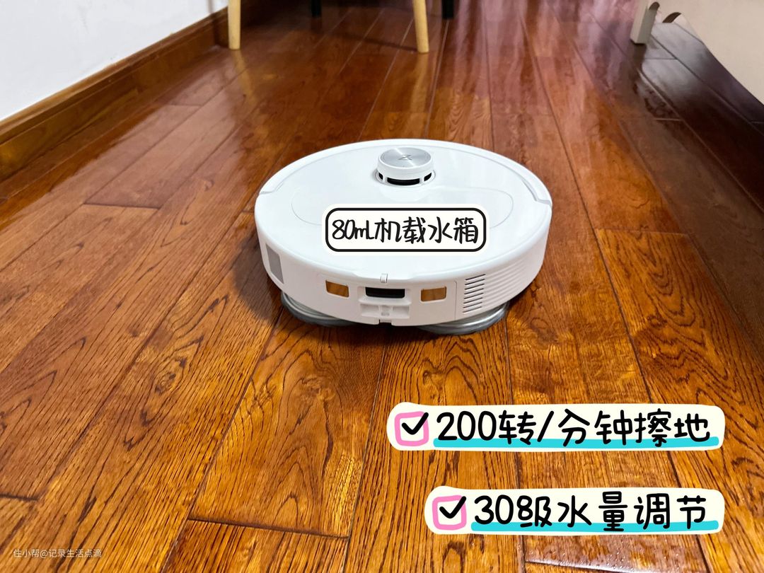 石头P10S Pro在拖地方面的配置也是最强阵容,抗菌拖布每分钟可擦地200次,同时扫拖机器人还配置了80ml机载水箱,可以实现恒湿拖地,而且水量有30级可调,可以根据地面材质随心调节。