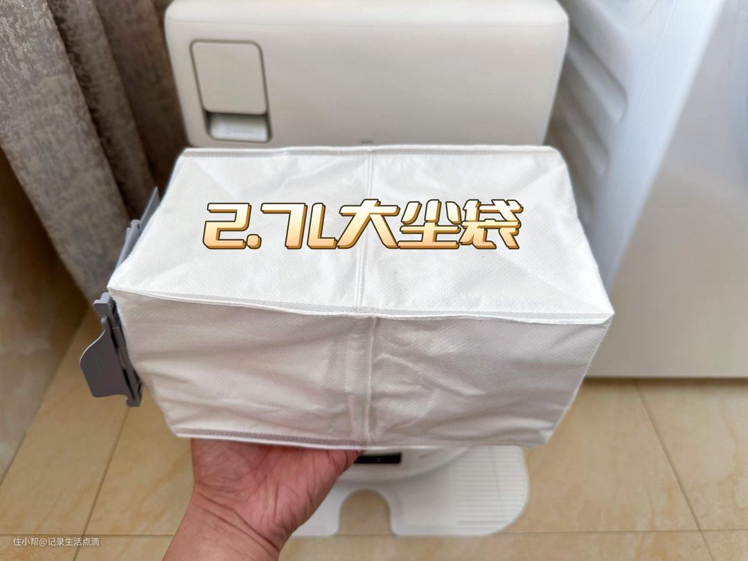 石头P10S Pro配置了2.7L超大容量尘袋,普通家庭差不多只需65天更换一次尘袋。尘袋采用了E12级过滤材料,对过敏原有着出色的过滤效果,可以避免污染室内空气。