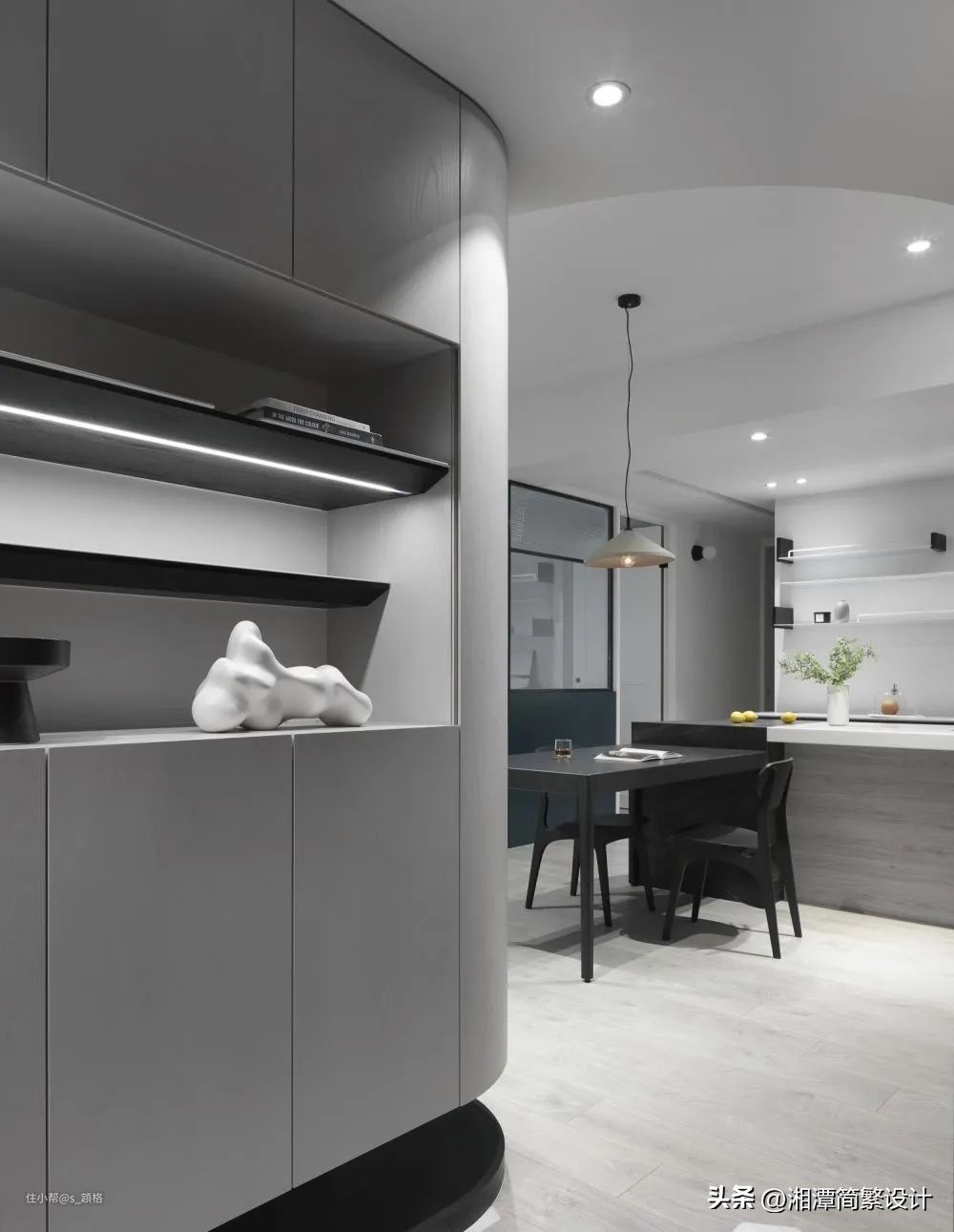 还有一种嵌入墙体的隐形吊柜门,颜值更高: