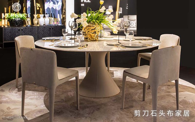 无论是皮革、丝绒、金属还是织物,每一个细节都经过精心挑选。如今的豪宅已不再迷恋纸醉金迷的炫目,而更注重以不动声色的方式展示“富贵”。这几款餐桌仿佛是一件件精致瑰丽的艺术品,每一件都展现出Versace独有的气质。