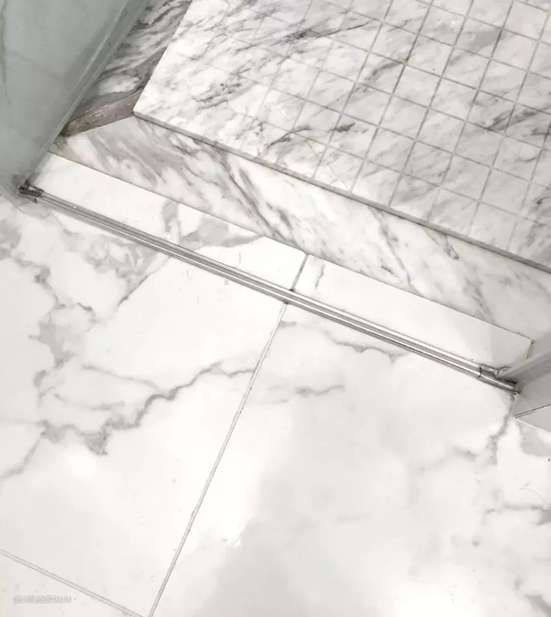 淋浴区中间高,四周低,加长地漏排水很快,防滑槽设计让老人孩子洗澡更安全。