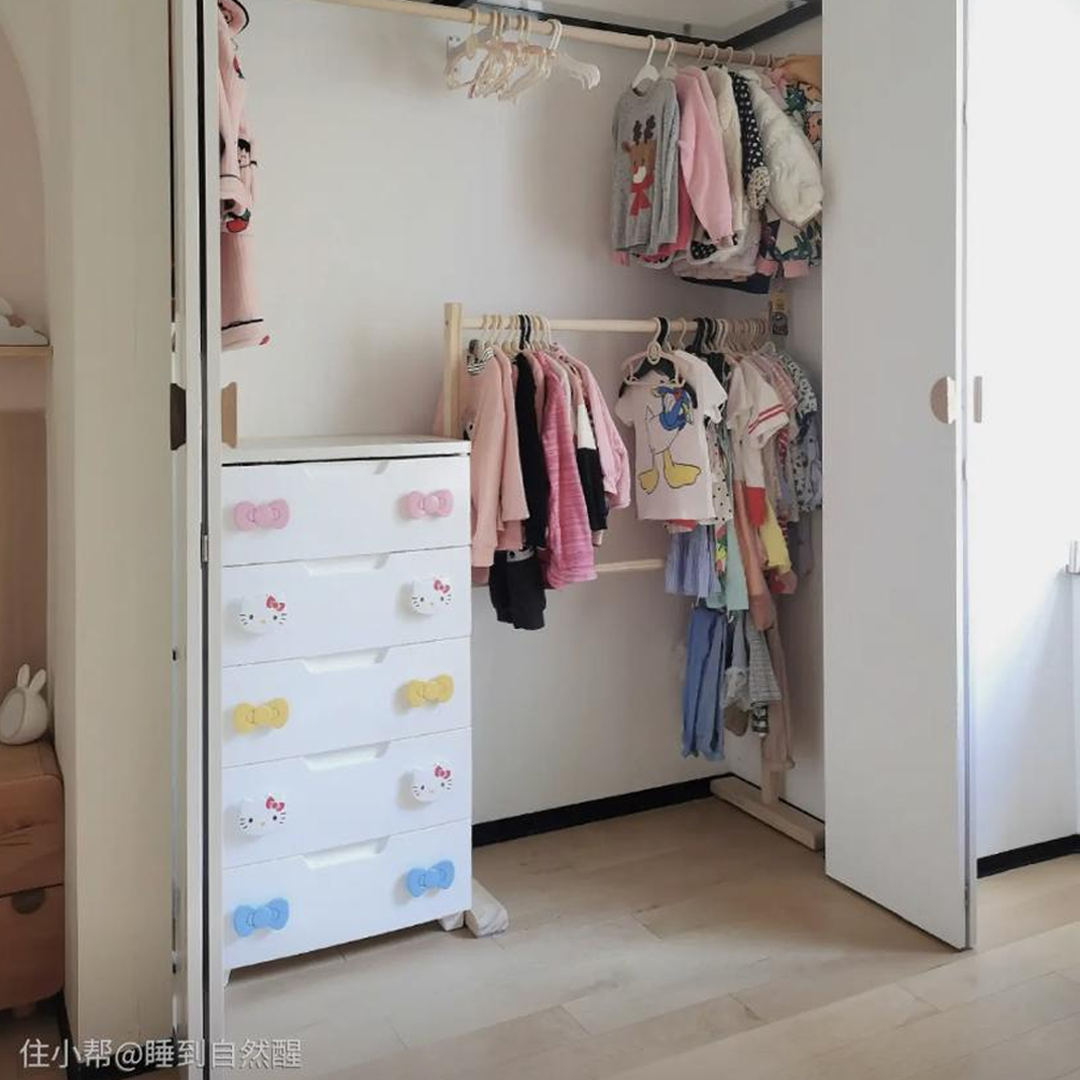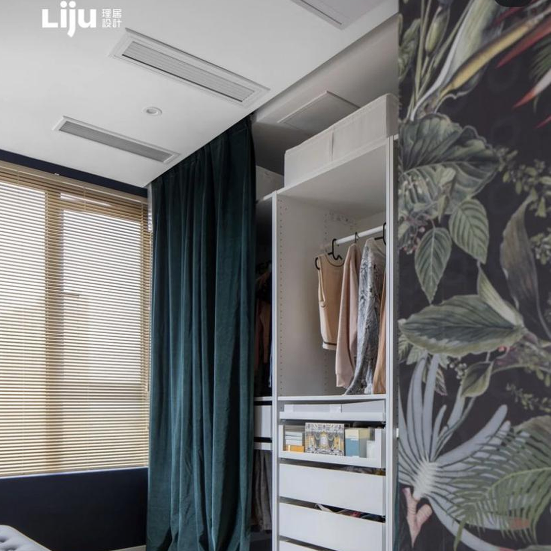▽ 更省钱-门帘:很多情况下,柜门费用比柜体还贵,要包含板材+五金+工艺。越来越多人选择门帘,不仅实惠,而且能全部打开,营造出衣帽间效果。但门帘密封性差,更适合空气干燥、灰尘少的房子。