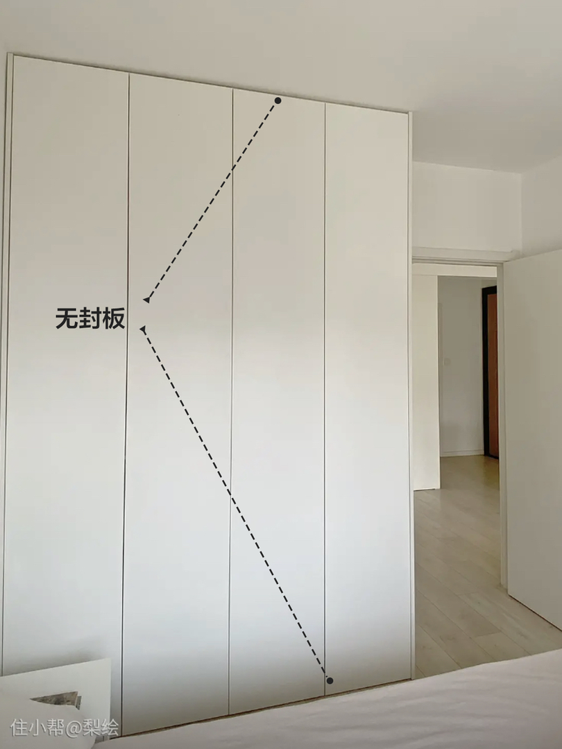 封板,就是为了柜子和墙顶面衔接,遮挡不规则缝隙,周围加装的一圈外框。封板可宽、可窄,也可隐藏不见。大家都喜欢简约的无封板,但最终要根据顶面平整度来决定。
