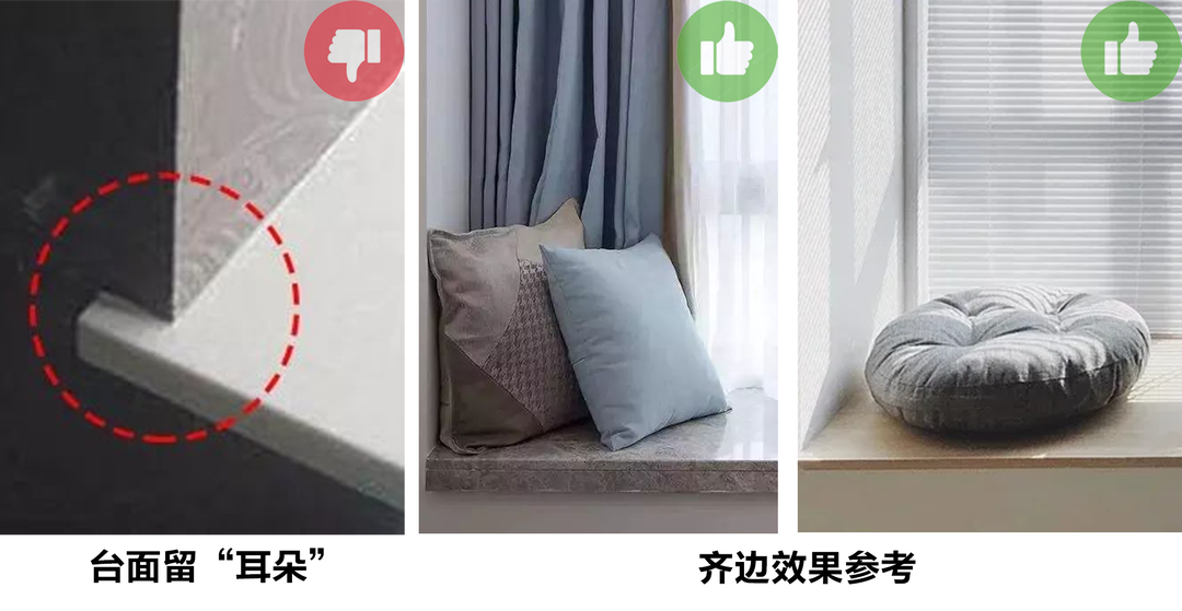 即使不做窗套,开发商和施工队也会默认给台面留一个“耳朵”,多余也不好看,施工时需要提前说清楚。