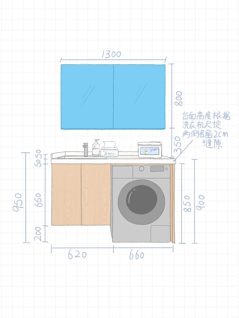 洗衣机850*660mm,具备洗烘一体功能。