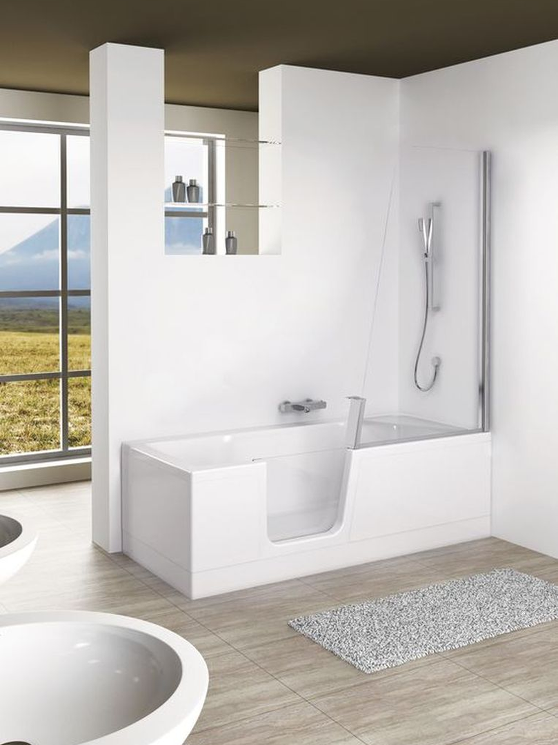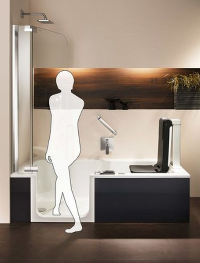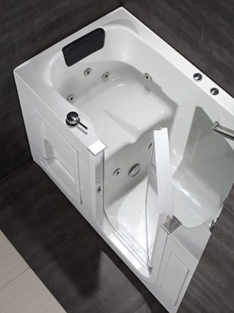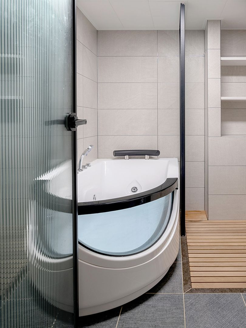 这种开门式的坐浴浴缸,对老人使用友好,既暖和又能方便控制水位,避免容易滑倒的安全隐患;