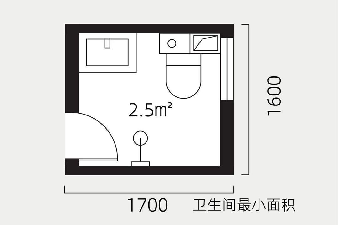 卫生间包含多种设备和管道,使用面积不宜过小,否则用起来不方便: 1. 最小面积:包含马桶、台盆和淋浴区的卫生间≥2.5㎡。 2. 想使用舒适,包含洗手台、马桶和淋浴间的卫生间使用面积宜在3~5㎡。 3. 包含洗手台、马桶、淋浴间和浴缸的卫生间:使用面积宜在4~6㎡。 4. 马桶区宽度至少要有40cm,前方至少要预留45cm,方便坐下、起身。 5. 独立马桶间最小尺寸是0.8mx1.2m,淋浴间最小尺寸是0.8mx0.8m。