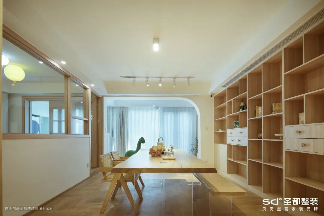 据大数据统计,从小在独立、安静的学习空间里学习的孩子,他的专注力普遍都比同龄人高。可以选择远离动区、采光优越的次卧做独立书房,并通过隔音门窗、吊顶设计来实现静谧环境。