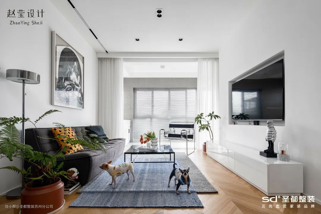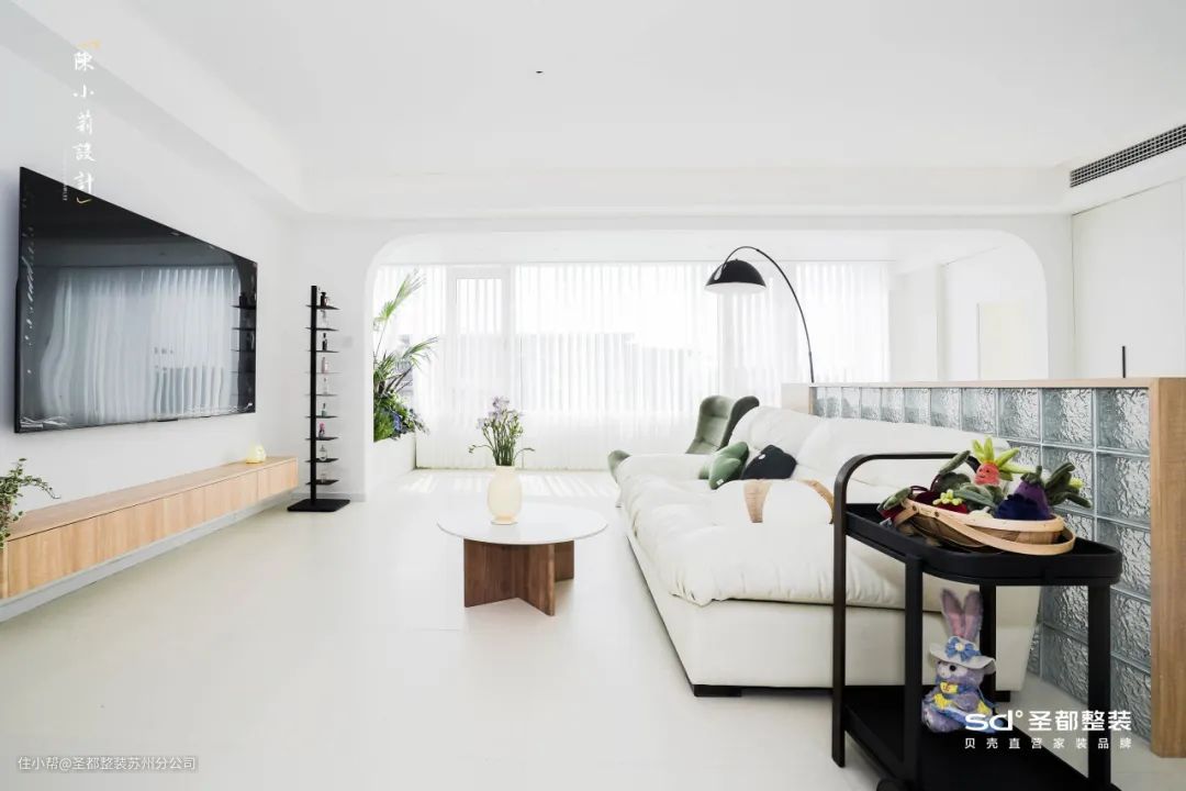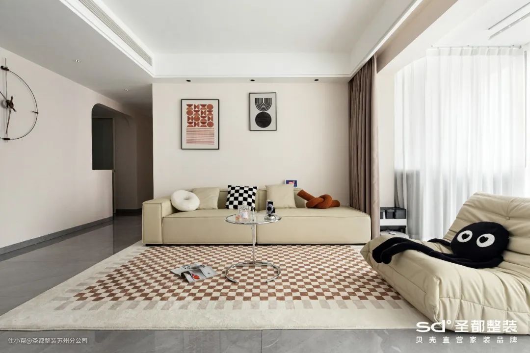客厅区域尽量减少家具,以低重心和小体量家具强化空间包裹感,让日常交流更亲密。
