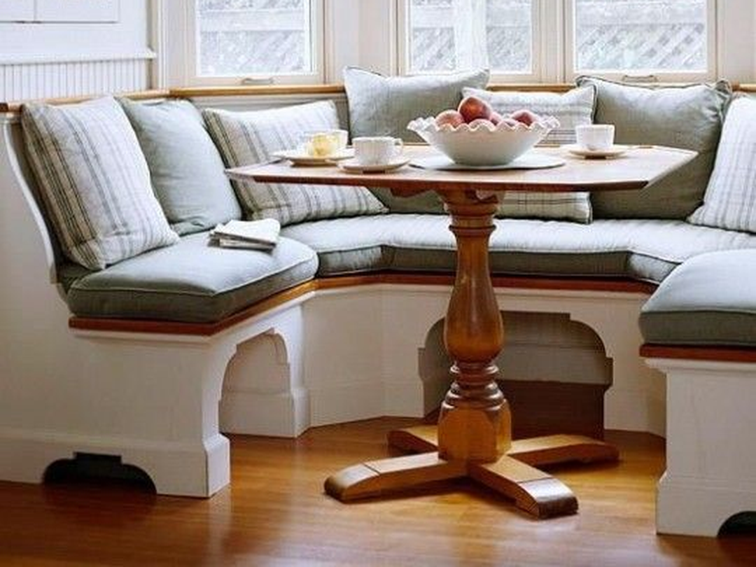 一般利用拐角墙放置,搭配圆形餐桌、方形餐桌都可以