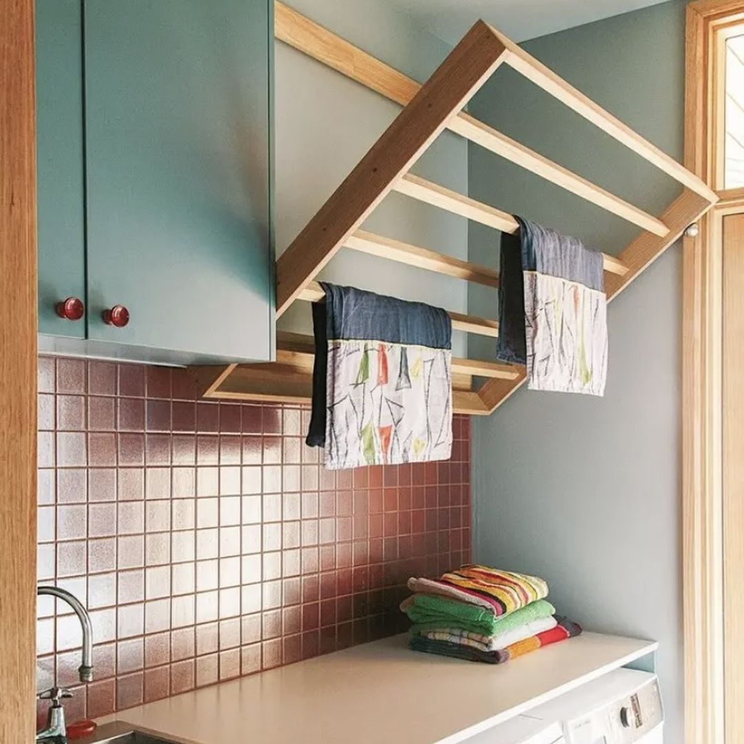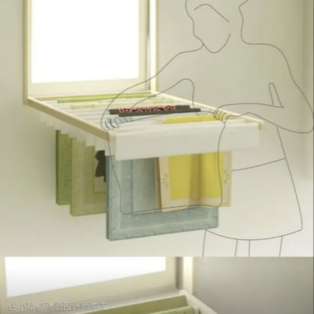 - 巧用定制柜:也有网友借助橱柜,特殊定制了可拉出的一排衣架,晾晒小物件十分合适。